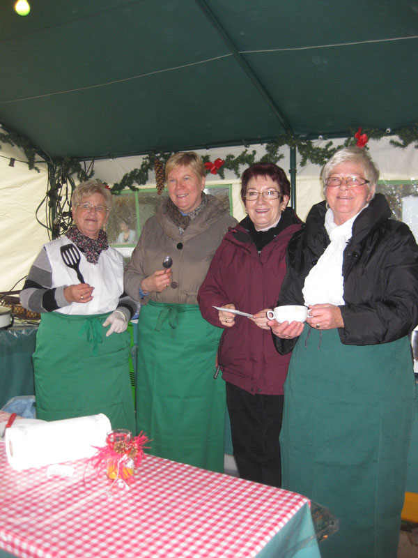 Wie jedes Jahr beteiligten sich die Landfrauen wieder an dem stimmungsvollen Weihnachtsmarkt rund ums Kulturhaus. Wir servierten unsere legendäre Kartoffelsuppe und belegte Brötchen mit Pfälzer Saumagen, sowie div. Lachsdelikatessen. Im Kulturhaus wurden kreative Arbeiten der verschiedensten Art angeboten. Im Innenhof und in den Clubräumen gab es Kaffee und Kuchen, sowie unterschiedlichste Arten von Plätzchen, Kuchen oder Grillspeisen.