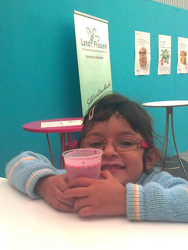 Wie schon seit Jahren bedienen die Käfertaler Landfrauen einen Tag die Milchbar im Zelt Bad.-Württ. auf dem Maimarkt. Köstliche Milch-Shakes mit Früchten. Kaffee oder Schokolade wurden hier angeboten, bei Bedarf auch mit Rezept. Und wie immer war von den Vorstandsfrauen des Rhein-Neckar-Kreises Bezirk Mannheim alles gut organisiert.